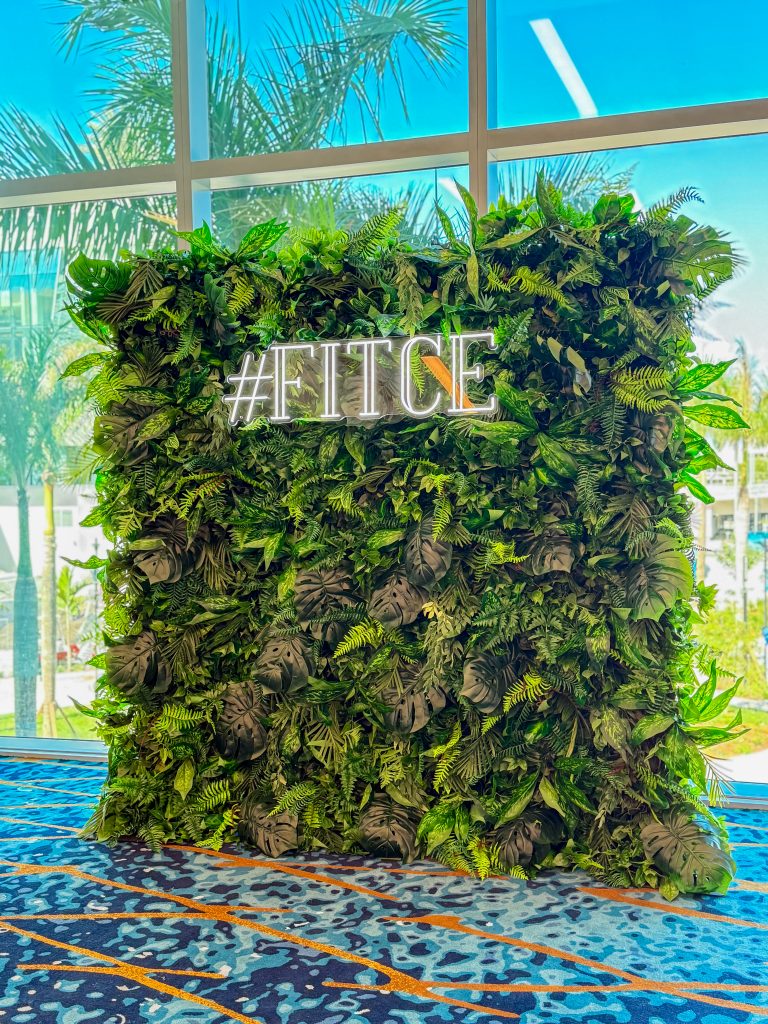 Sleek and versatile, the Las Palmas Tropical Greenery Wall offered a refined botanical aesthetic that paired beautifully with FITCE’s global and professional setting. This installation provided a clean, modern backdrop suitable for high-level conversations and media moments.